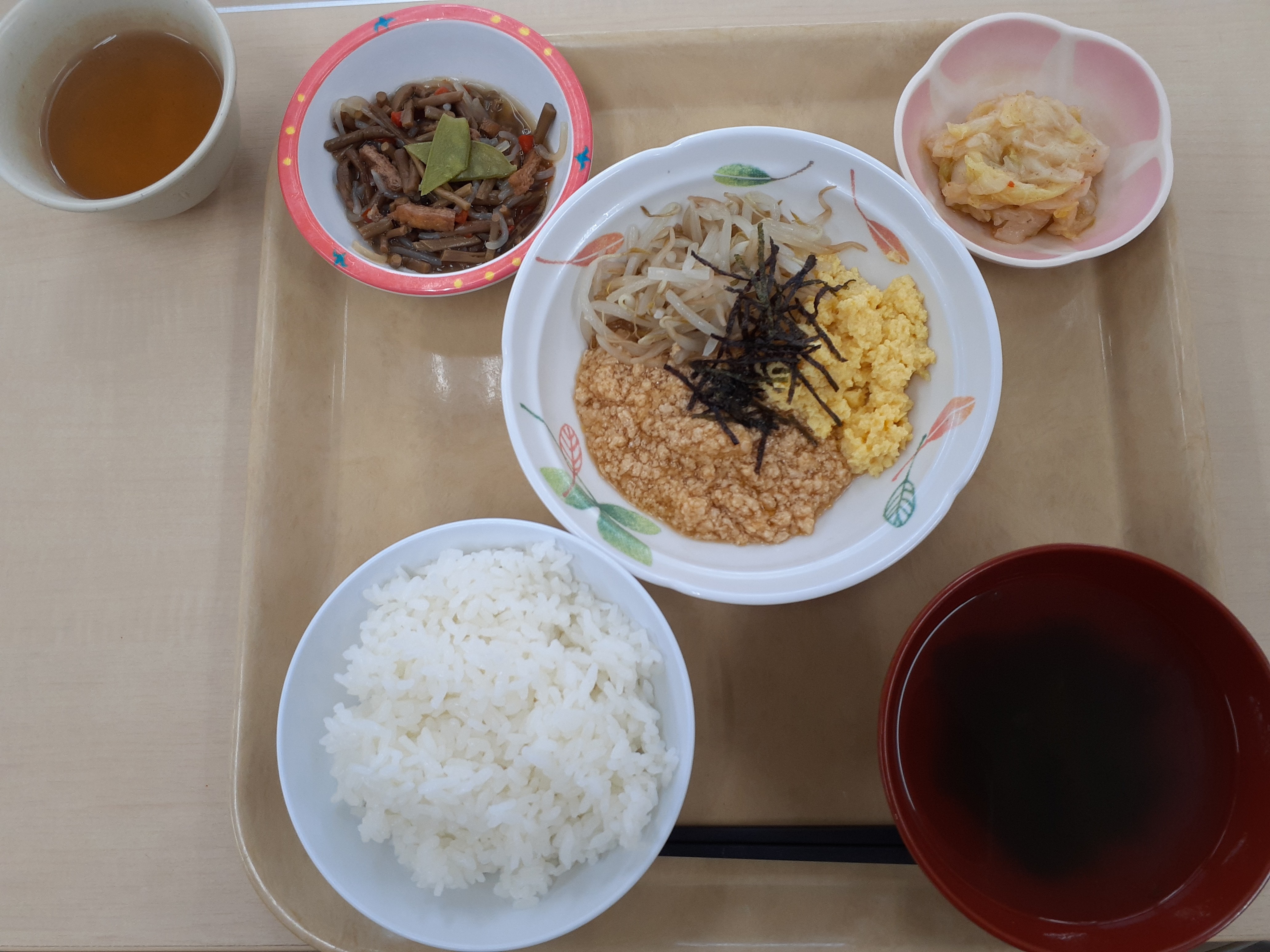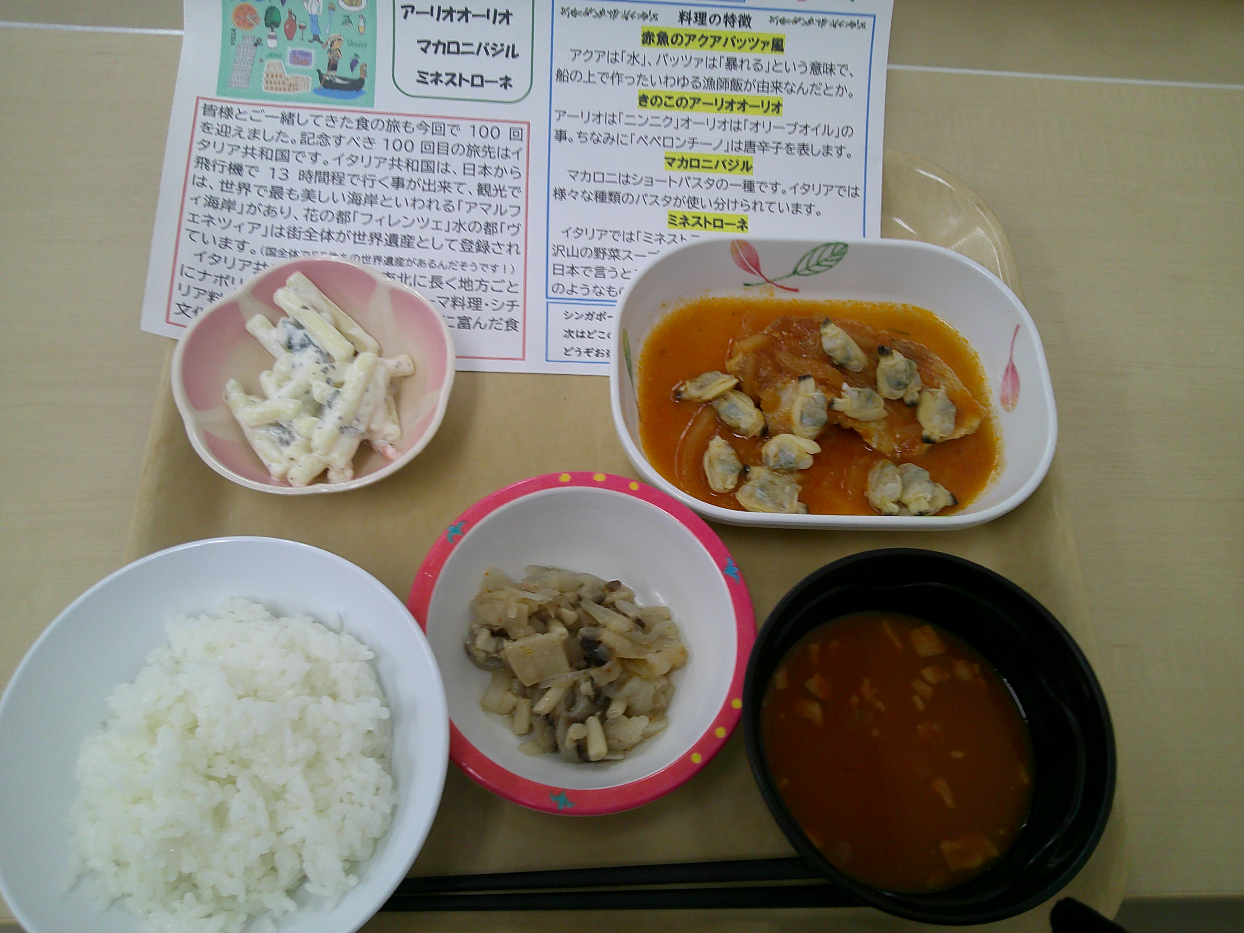 今回は世界へ出発する前の、食旅第一回目ということで、日本食となります。メニューは、ご飯、鱈と舞茸の煮浸し、青菜炒め、胡瓜とわかめの酢の物です。
