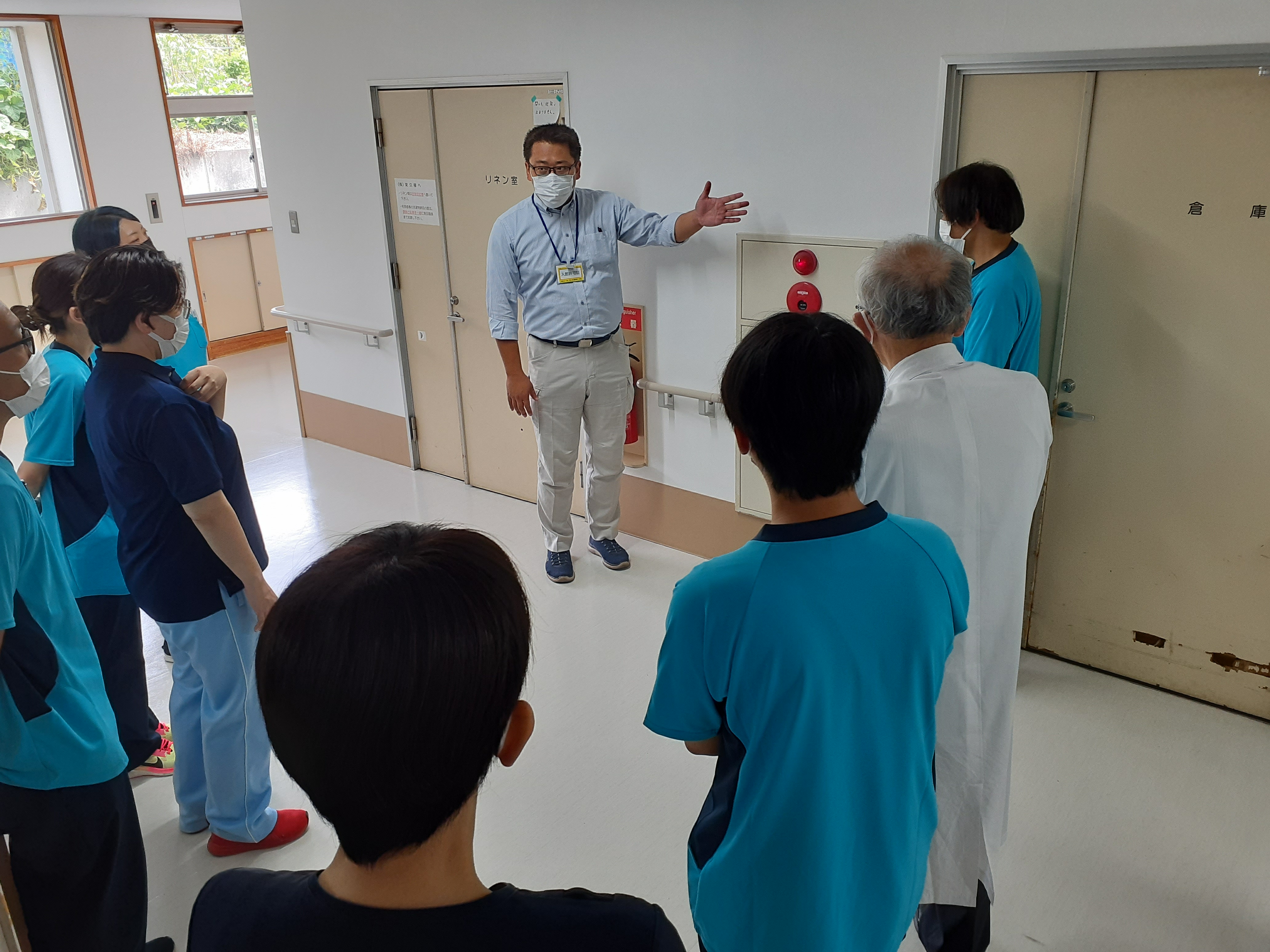 また防火管理者・防災設備会社(星野総合商事株式会社)様より、新入職員に対し消火設備等の説明も行いました。